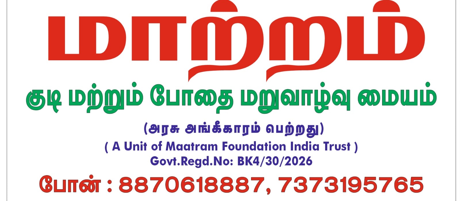 MAATTRAM De Addiction Is De-Addiction Center For Rehabilitation Of Alcohol And Drug Dependents. It Is Licensed By The Institute Of Mental Health Government Of Tamil Nadu. The center is well setup for counselling classes, quality food, during place and bunker cotes for bed treatment. Our goal the institute is to give sober life and humanize the rehabilitation process also the mission is to integrate the mainstream. Which focuses on the family and social understanding of illness and therapeutic intervention such as group therapies and occupational therapies are offered about 10 experienced staff members including Professional, caregiver and employee. Under the guidance of psychiatric doctor and general physician.